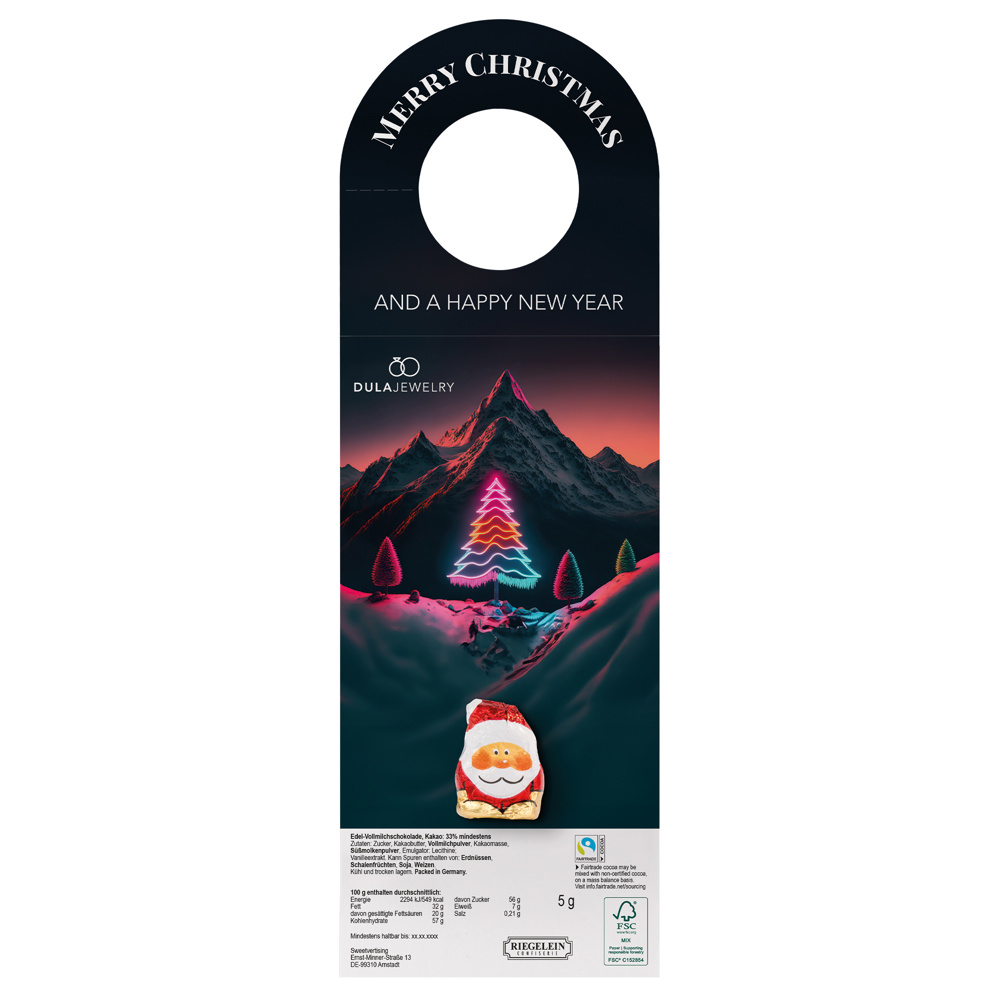 Werbeanhänger, Mini-Schoko Weihnachtsmann Edelvollmilch, 5 g massiv