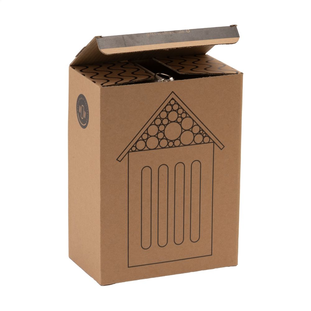 Dieses Insektenhotel aus Bambus bietet nützlichen Insekten wie Solitärbienen, Marienkäfern und Fliegen eine sichere Schutz- und Niststätte. Dank der vielfältigen Öffnungen finden mehrere Arten einen geeigneten Unterschlupf. Mit Metallaufhänger. Eine wertvolle Bereicherung für Garten oder Balkon – gut für die Artenvielfalt und die Atmosphäre. Verpackt pro Stück.